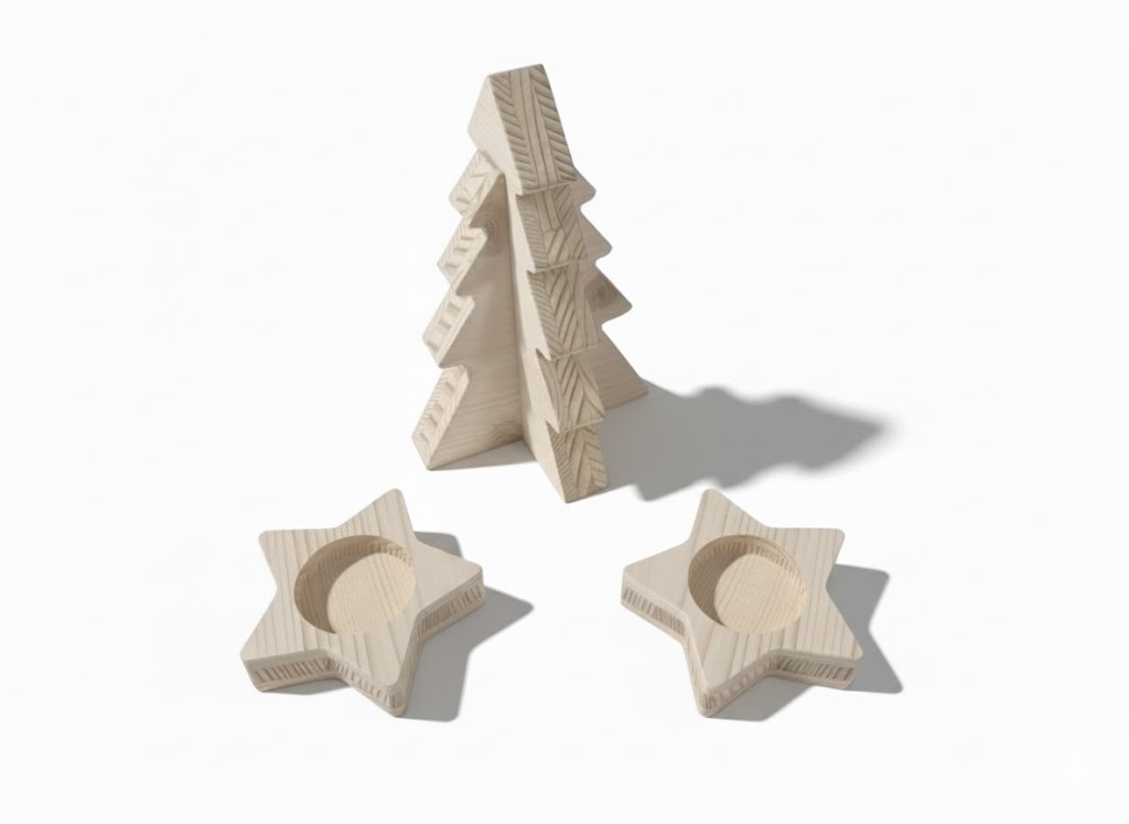 Décoration de Table de Noël en Bois à Personnaliser (Lot de 3 pièces)