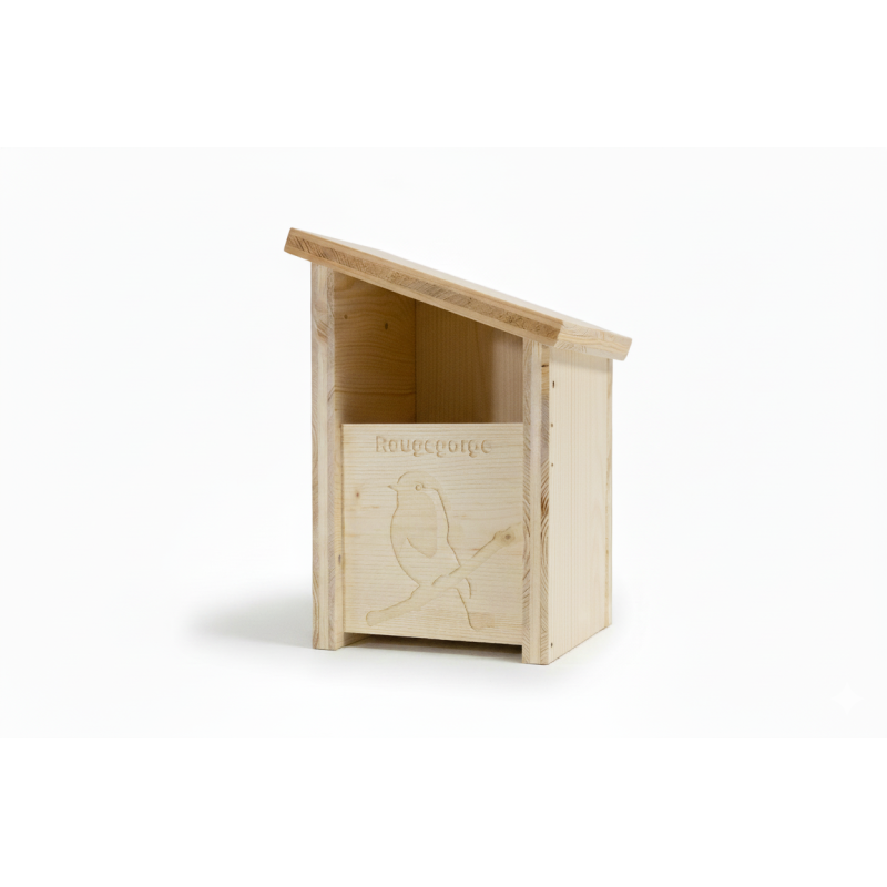 - Toit Protecteur : Les larges débords du toit protègent la nichée de la pluie.