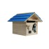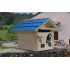 Le toit est protégé par une surface de tuiles en résine synthétiques recyclées bleu azur, protection efficace contre les intempéries.