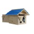 Le toit est protégé par une surface de tuiles en résine synthétiques bleu azur, protection efficace contre les intempéries.